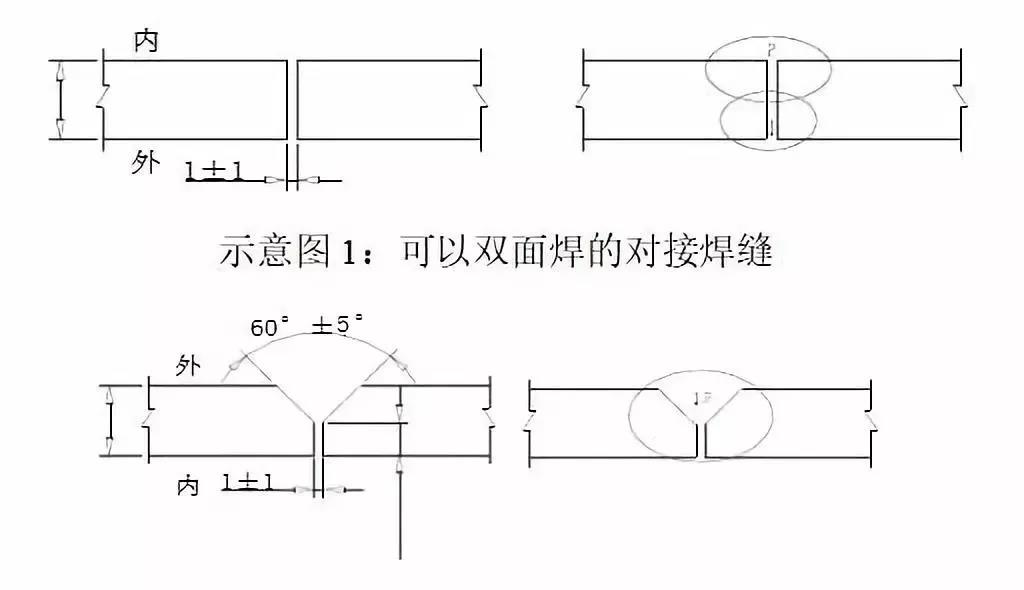 板厚≥4.5mm的無論單面焊和雙面焊都必須開坡口焊接;? 對接焊可視坡口間隙的大小情況而決定是加絲焊還是不加絲自熔焊,但應(yīng)保證背面成形良好;